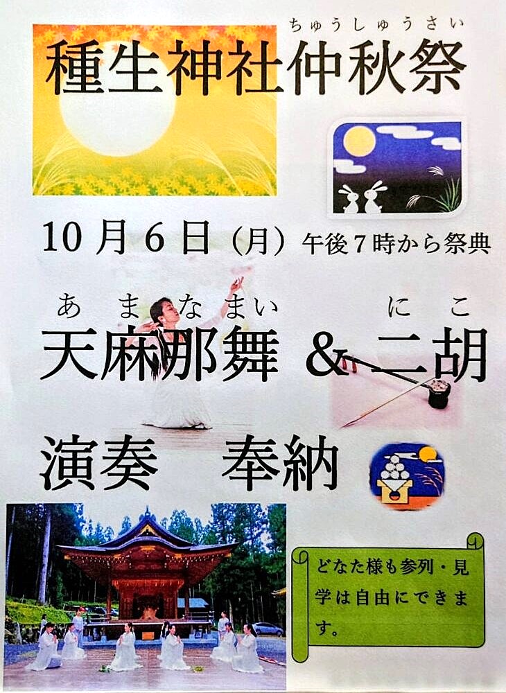 2025.10.6 仲秋祭 伊賀 種生神社 天麻那舞御奉納二胡演奏