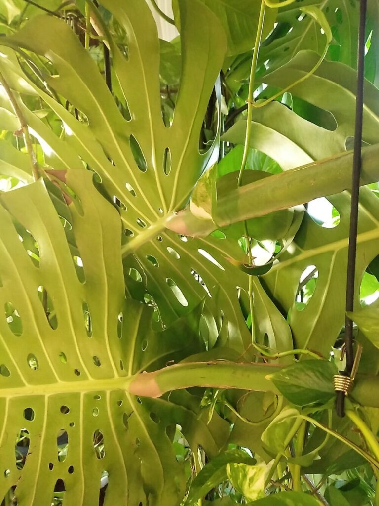 南の窓は、超巨大モンステラデリシオーサの葉で、完全にふさがれています。
