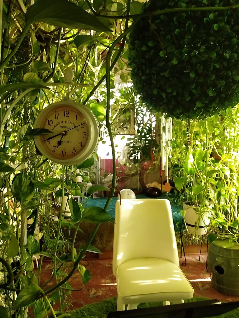 画面の左手が東、右手奥が南です。朝陽はポトスの隙間から入りますが、あまりのジャングルで窓はほとんどふさがれておりまして、日中はかなり暗いです。(本来は明るい部屋です)